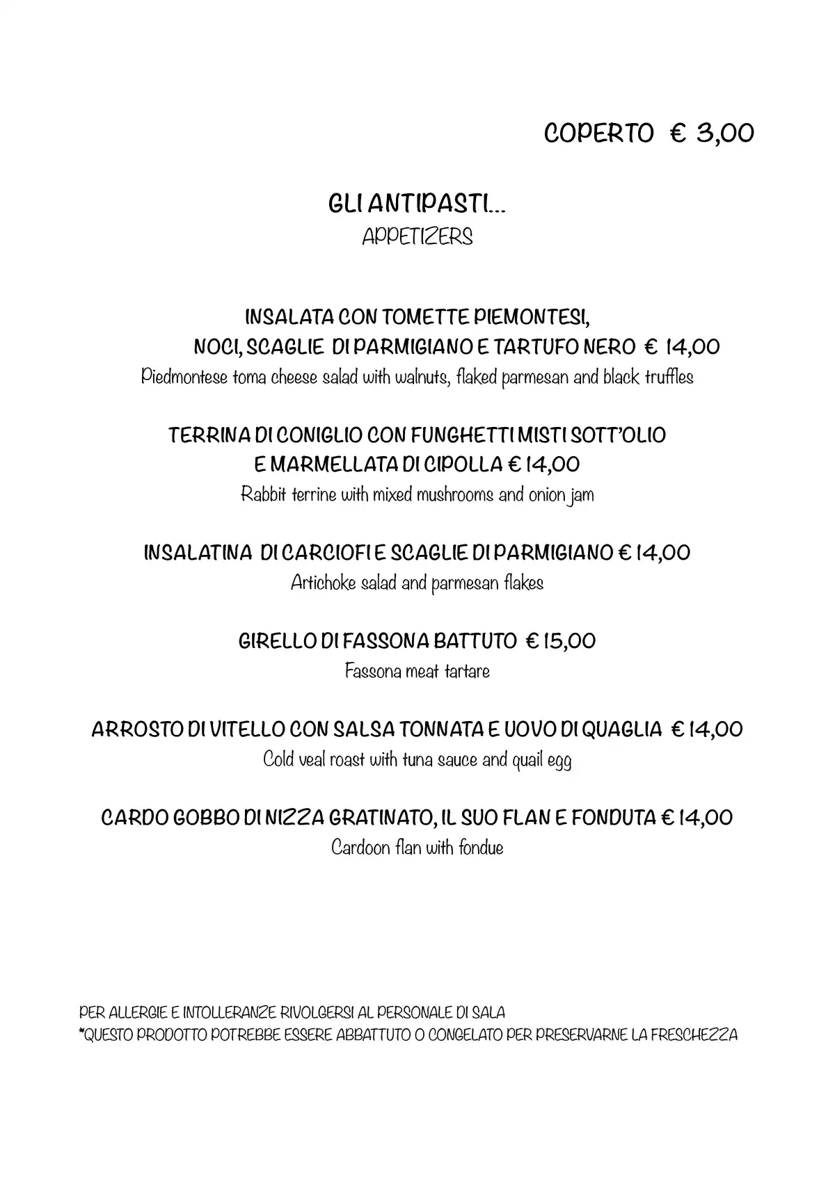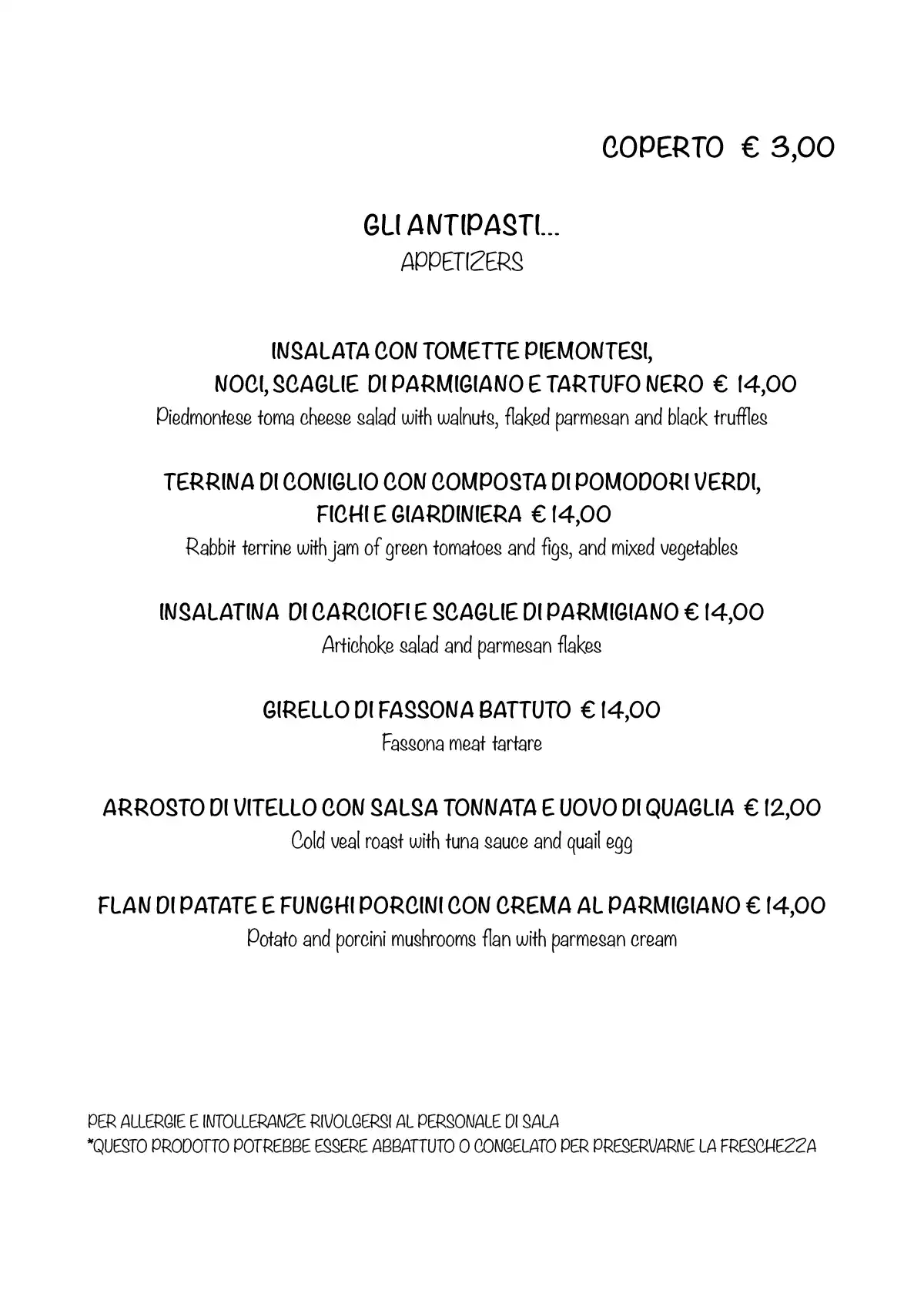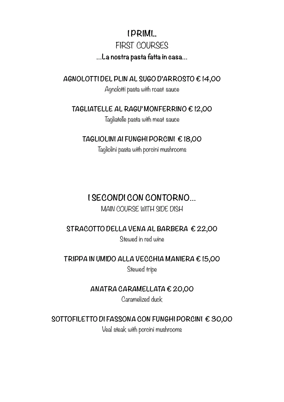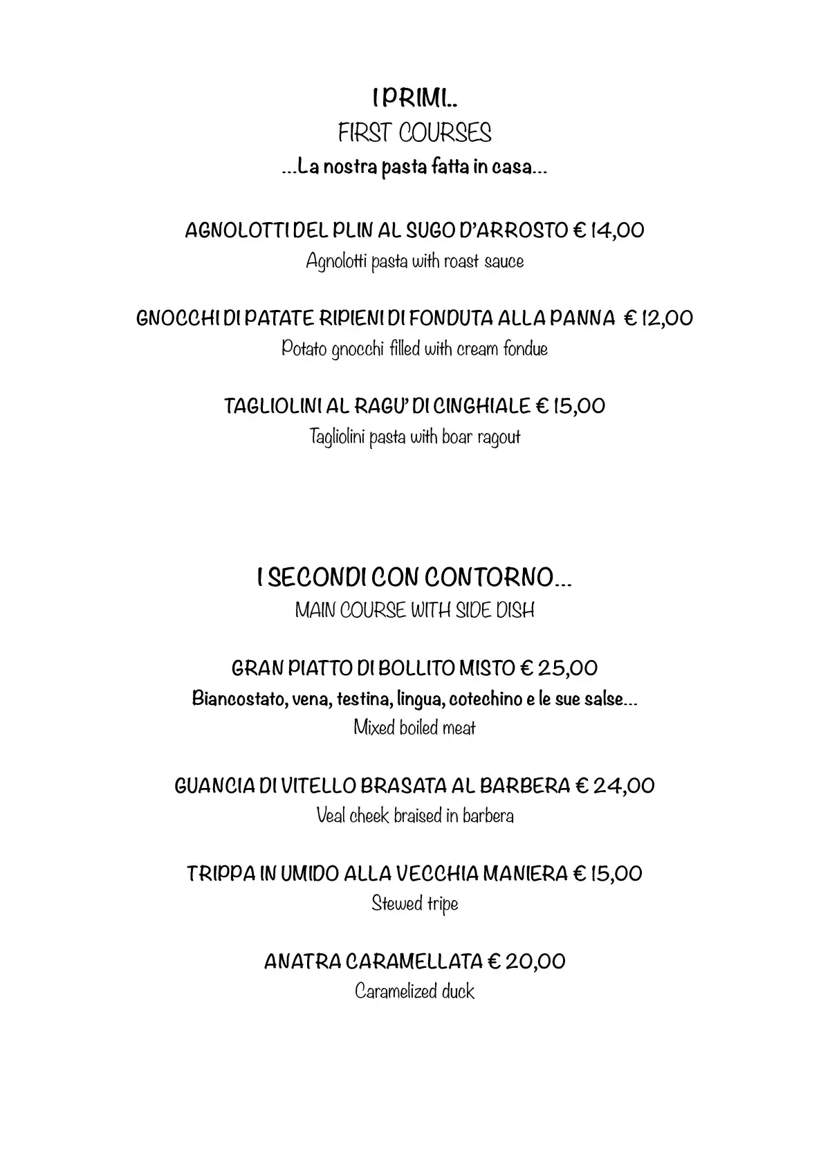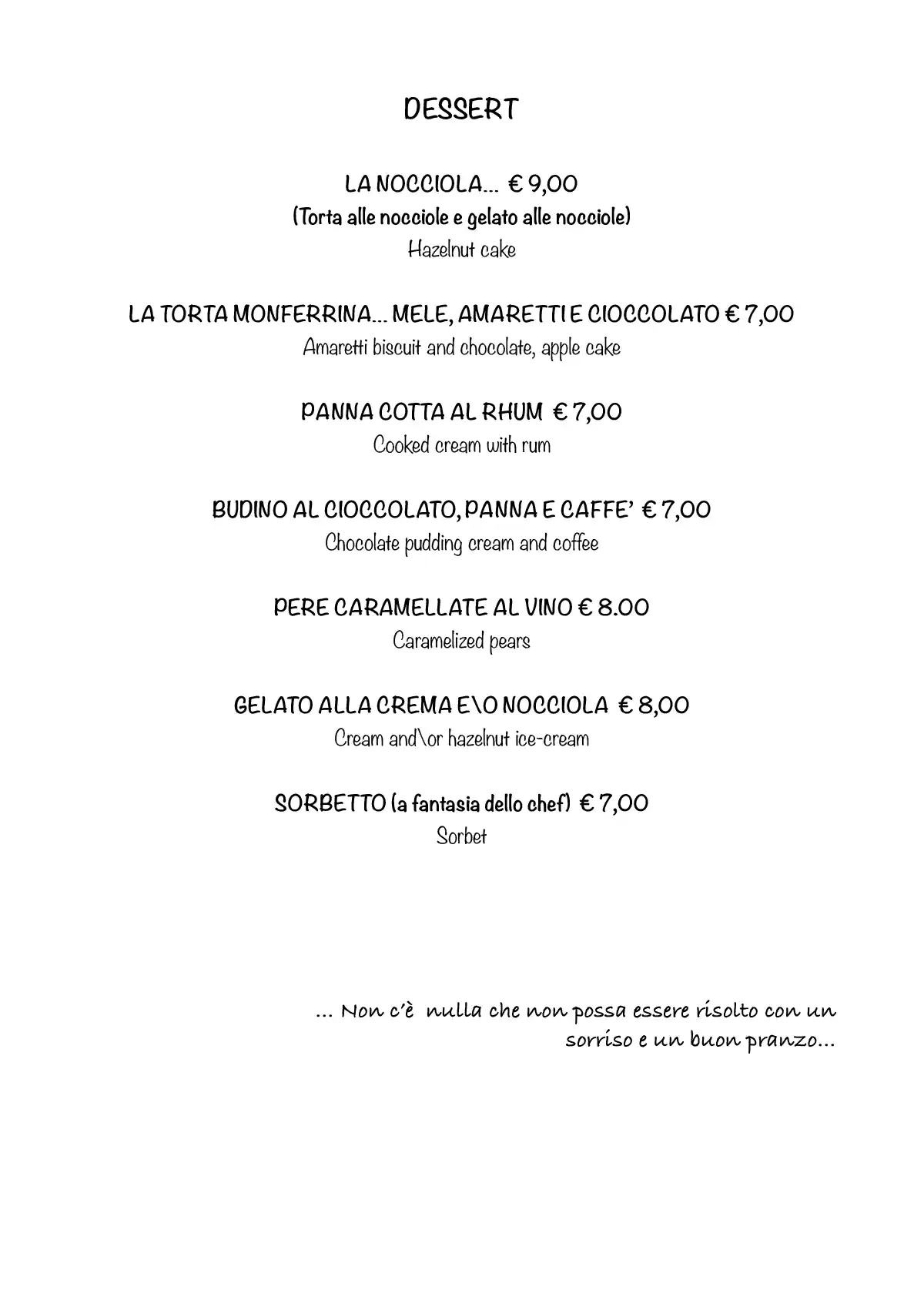 Cari clienti, ecco il nuovo menù. Abbiamo un grande Dehor dove potervi ricevere e servire al meglio.